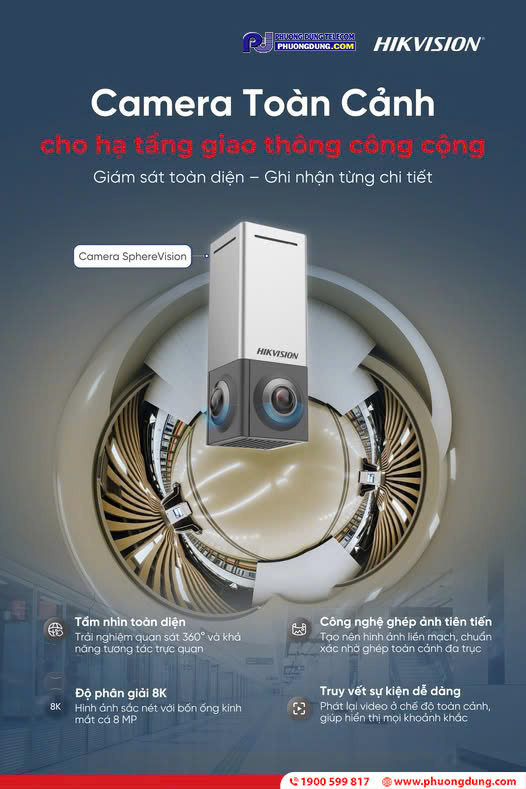 Trong bối cảnh các đô thị ngày càng phát triển, việc đảm bảo an ninh giao thông công cộng trở thành yếu tố then chốt. Nhằm đáp ứng nhu cầu đó, Công ty TNHH Phương Dung chính thức giới thiệu Camera Toàn Cảnh Hikvision SphereVision – giải pháp giám sát hiện đại, mang lại tầm nhìn toàn diện và hình ảnh chi tiết đến từng khung hình.