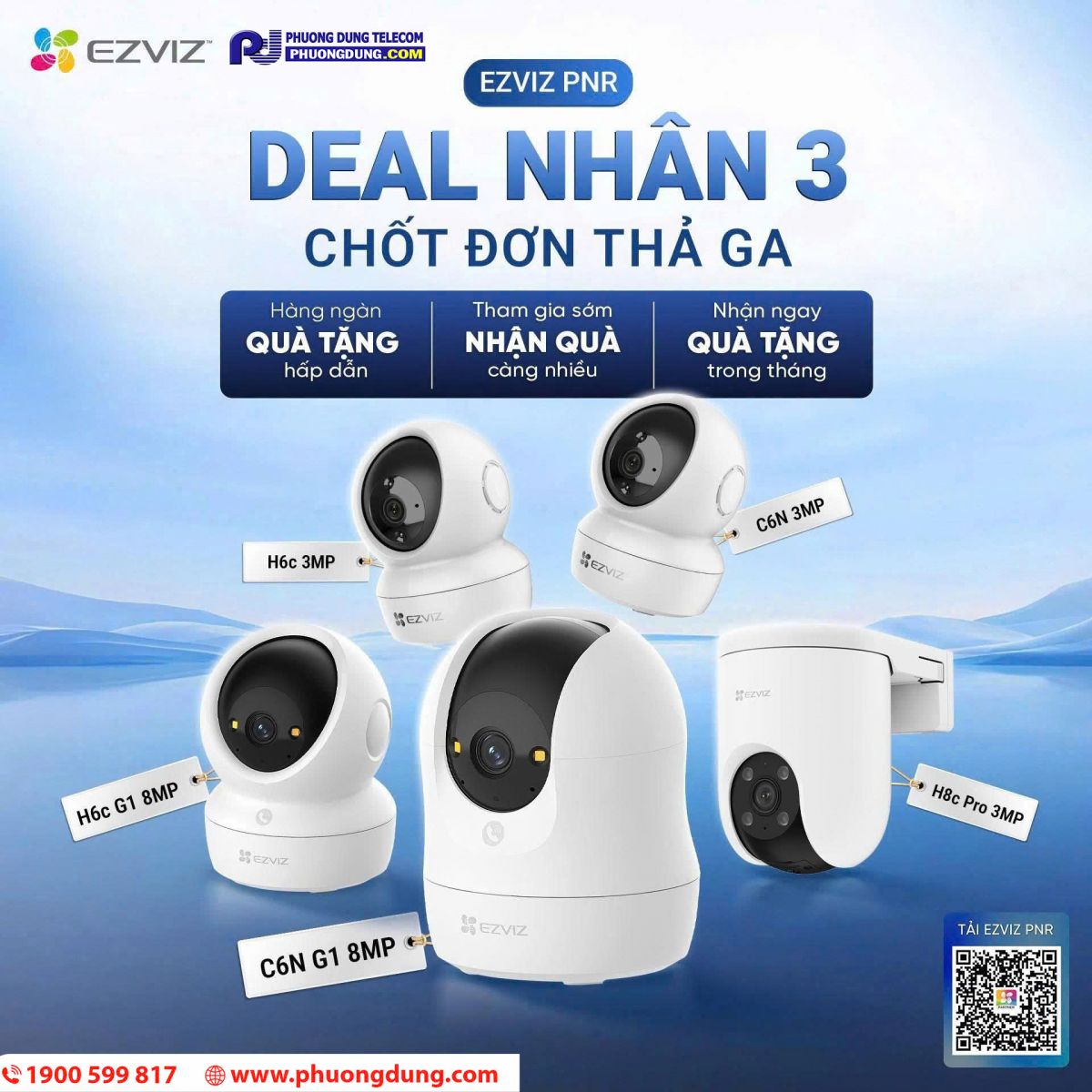 Tháng này, Phương Dung Telecom phối hợp cùng EZVIZ Việt Nam mang đến chương trình siêu ưu đãi “Deal Nhân 3 – Chốt Đơn Thả Ga”, dành riêng cho khách hàng yêu thích các dòng camera thông minh EZVIZ.