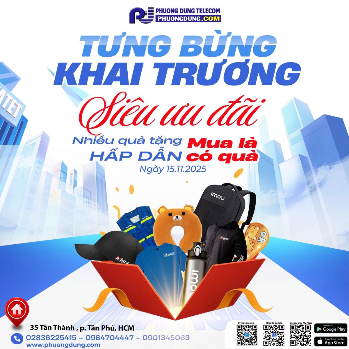 Với mục tiêu phục vụ tốt hơn nhu cầu camera quan sát, thiết bị mạng, máy in, phụ kiện công nghệ và giải pháp viễn thông, Phương Dung Telecom liên tục mở rộng hệ thống, nâng cấp dịch vụ và cải thiện trải nghiệm mua sắm cho khách hàng doanh nghiệp – hộ kinh doanh – gia đình.